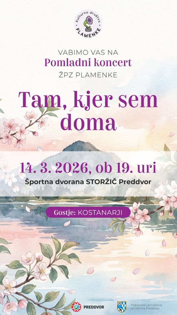 Pevke Ženskega pevskega zbora Plamenke iz Preddvora vas z veseljem vabimo na pomladni koncert, na katerem bomo skozi pesem pripovedovale zgodbo o domu – o kraju, kjer smo sprejete in povezane.