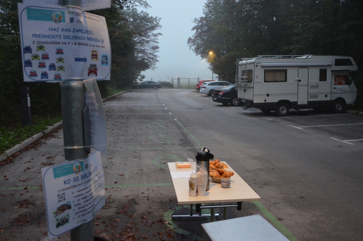 V sodelovanju s Centrom za trajnosti razvoj podeželja so bili vsi sedanji in bodoči uporabniki v petek, 12.septembra med 6. in 8.uro na P+R povabljeni na BREZPLAČNO kavo in rogljičke.