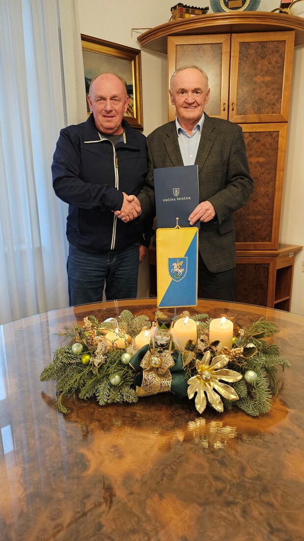 Danes sta župan Občine Šenčur Ciril Kozjek in direktor podjetja Gradbena mehanizacija Vilko Konc s. p. Vilko Konc podpisala okvirni sporazum o izvajanju zimske službe na območju Občine Šenčur za zimski obdobji 2025/2026 in 2026/2027.