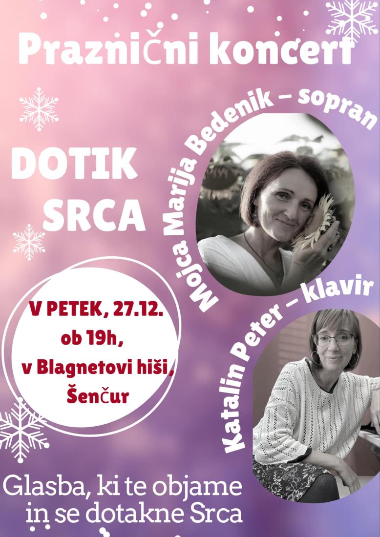 v petek, 27. decembra, vas prisrčno vabimo v Blagnetovo hišo na poseben praznični koncert z naslovom "Dotik srca".