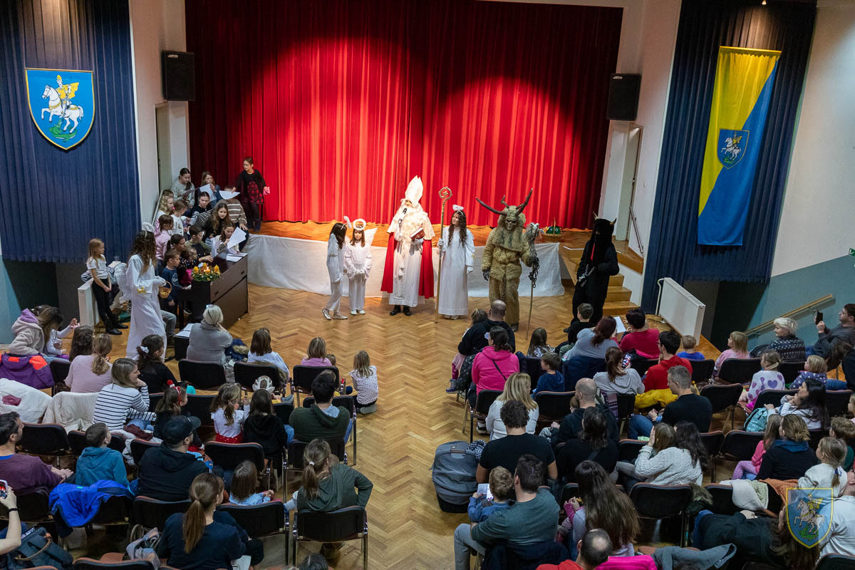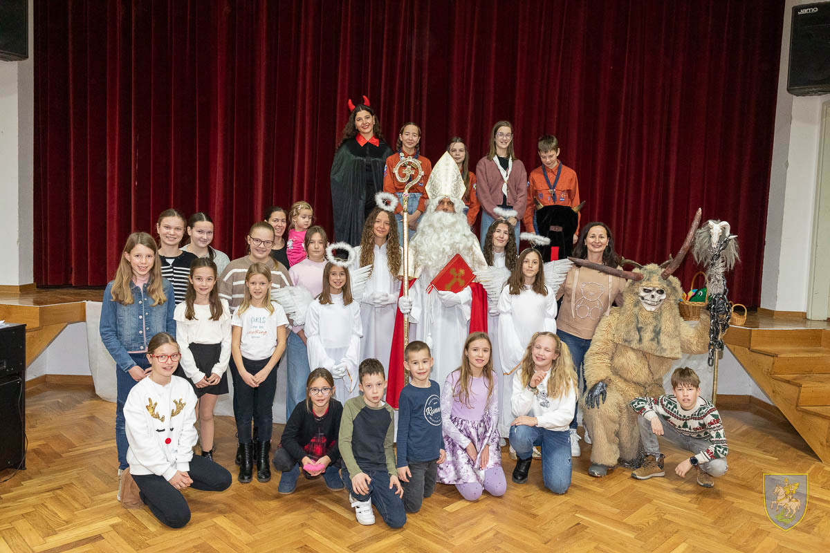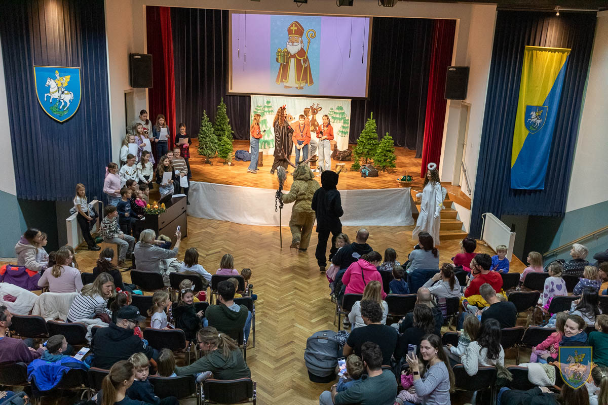 Po predstavi je sledil najbolj pričakovani trenutek – obisk svetega Miklavža. V spremstvu angelov in parkeljnov je prijazni svetnik nagovoril otroke, jih pohvalil za pridnost ter jih obdaril z darili. Angeli so s svojo toplino pričarali občutek miru, parkeljni pa so z nekaj nagajivosti poskrbeli za dodatno razburljivost, a brez strahu, saj je Miklavž ves čas skrbel za dobro voljo.
