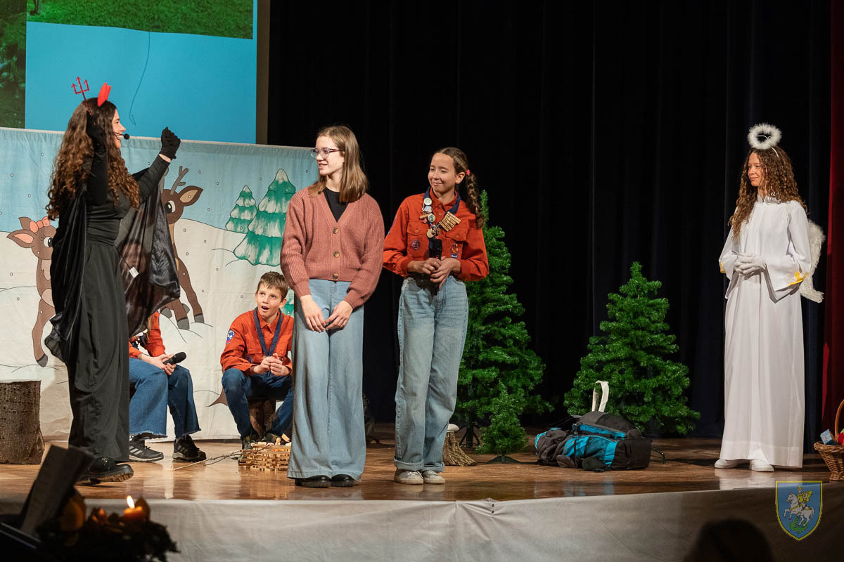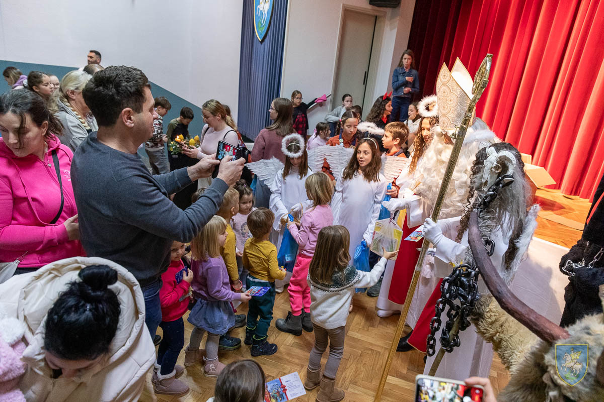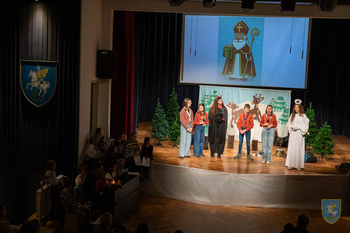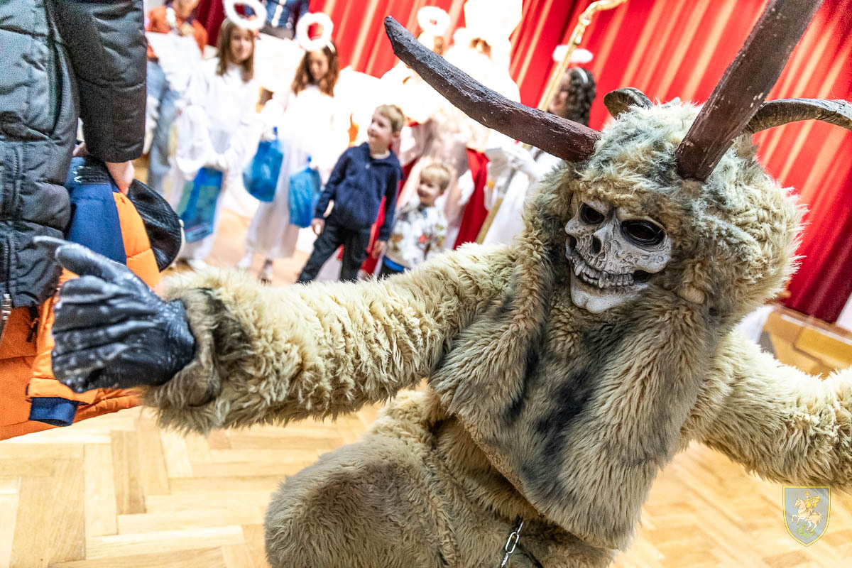 Po predstavi je sledil najbolj pričakovani trenutek – obisk svetega Miklavža. V spremstvu angelov in parkeljnov je prijazni svetnik nagovoril otroke, jih pohvalil za pridnost ter jih obdaril z darili. Angeli so s svojo toplino pričarali občutek miru, parkeljni pa so z nekaj nagajivosti poskrbeli za dodatno razburljivost, a brez strahu, saj je Miklavž ves čas skrbel za dobro voljo.