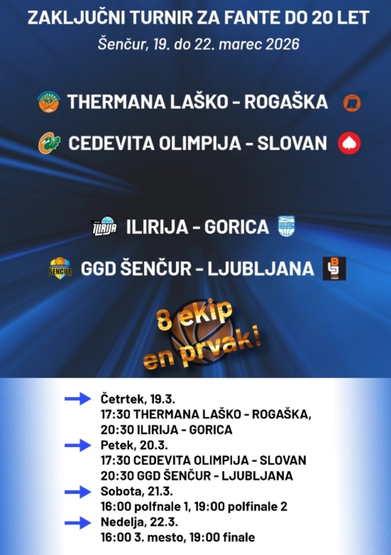 Nedelja, 22.3.2026: 16:00 tekma za 3. mesto, 19:00 finale