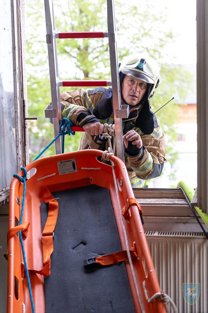 Scenarij vaje je predvideval poškodovano osebo v objektu, do katere dostop ni bil mogoč po običajnih poteh. Gasilci so zato izvedli reševanje s pomočjo gasilske lestve in vrvne tehnike, pri čemer so uporabili ustrezno zaščitno in reševalno opremo. Poseben poudarek je bil na varovanju ponesrečenca, pravilni navezavi, komunikaciji med člani ekipe ter varnem spuščanju na tla.