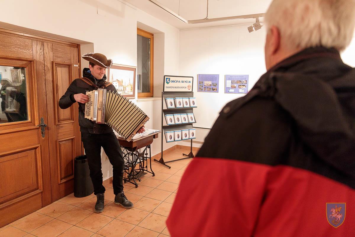 Lepo število obiskovalcev, med katerimi sta bilatudi predsednik Odbora za kulturo občine Šenčur, g. SašoGašperlin in občinska svetnica ga. Slavka Weisseisen, jenagovoril in pozdravil podžupan g. Aleš Perič Močnik, ki jeizpostavil, da se veseli tega, da se tudi društva iz sosednjih občin odločajoza razstavljanje v našem muzeju.