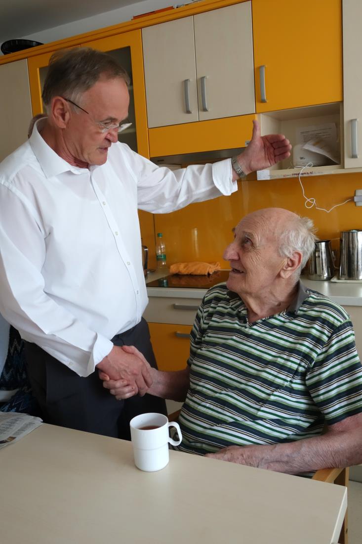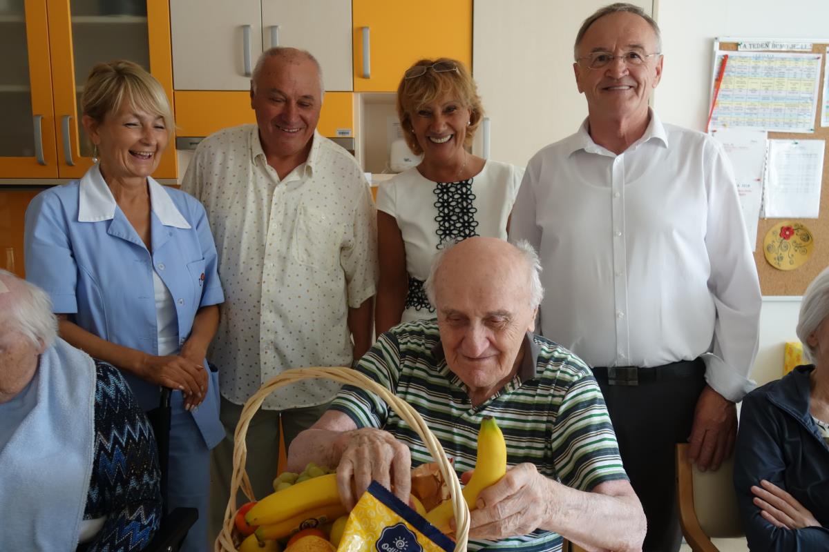 Tudi gospoda Ivana, ki biva v Domu upokojencev Kranj sta obiskala župan Ciril Kozjek in predsednik KS Šenčur Miro Peternel in mu voščila ter predala simbolno darilo.