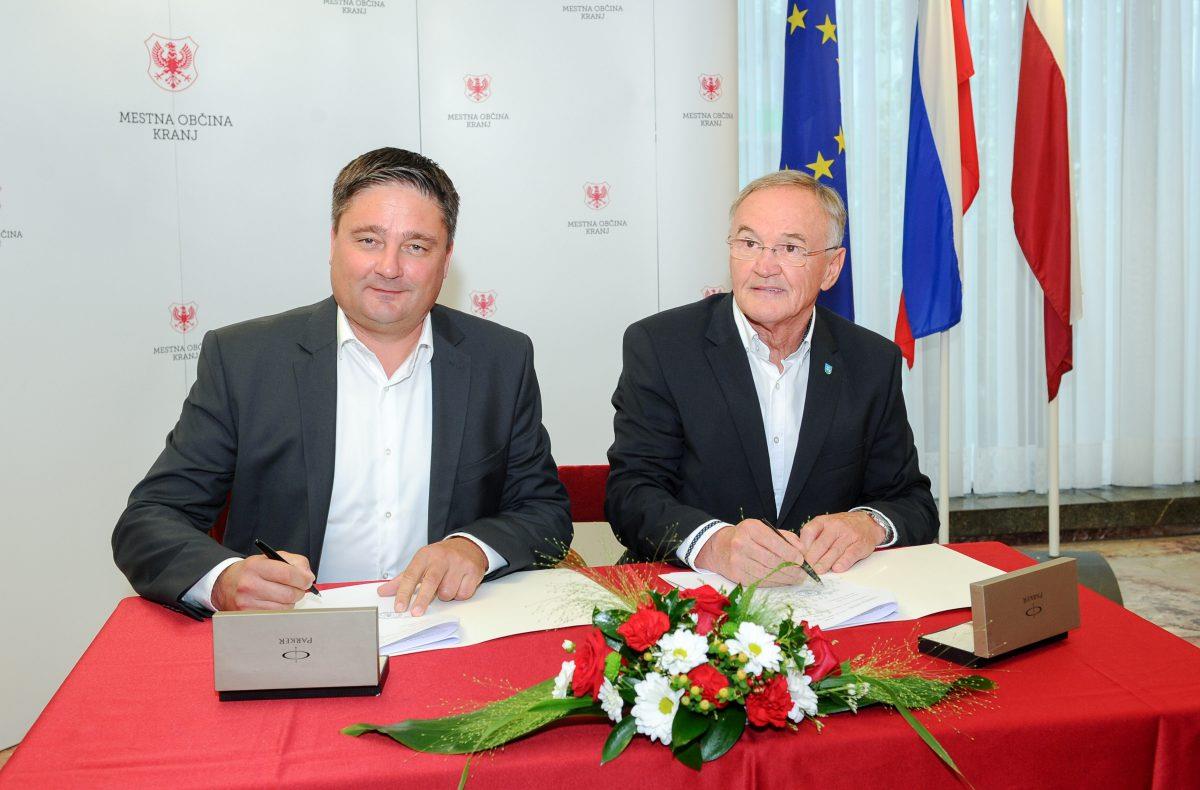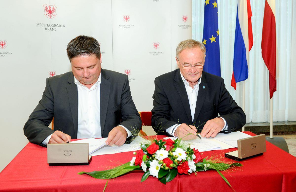 Kranj, 8. oktober 2018 – Župan MO Kranj Boštjan Trilar in župan Občine Šenčur Ciril Kozjek sta podpisala medobčinsko pogodbo o sodelovanju pri izvedbi projekta »Novogradnja komunalne čistilne naprave – KČN Trboje«. Investicijski projekt, ki ga vodi Občina Šenčur, je vreden 2,734 milijona evrov, MO Kranj se vključuje z 39,80-odstotnim deležem, kar predstavlja 908.137,78 evrov (brez DDV) oziroma 1.107.928,09 evrov (z DDV). Zaključek del in odprtje sta napovedana za začetek novembra 2018.