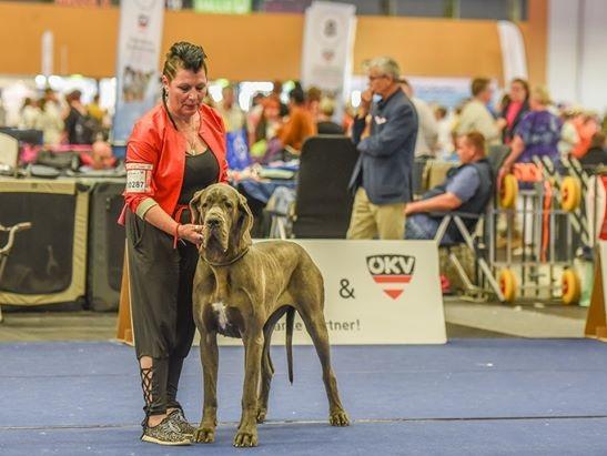 Letos sta bila na razstavo prijavljena 2 psa- moder samček Happy Hippo in pa njegova sestra Her Majesty - oba v razredu mladih psov. Samček je osvojil 1.mesto in tako postal EVROPSKI MLADINSKI PRVAK 2019, psička Her Majesty pa je bila v svojem razredu odlična 3, kar je za tako veliko razstavo tudi odličen rezultat- prijavljenih je bilo 56 modrih nemških dog.