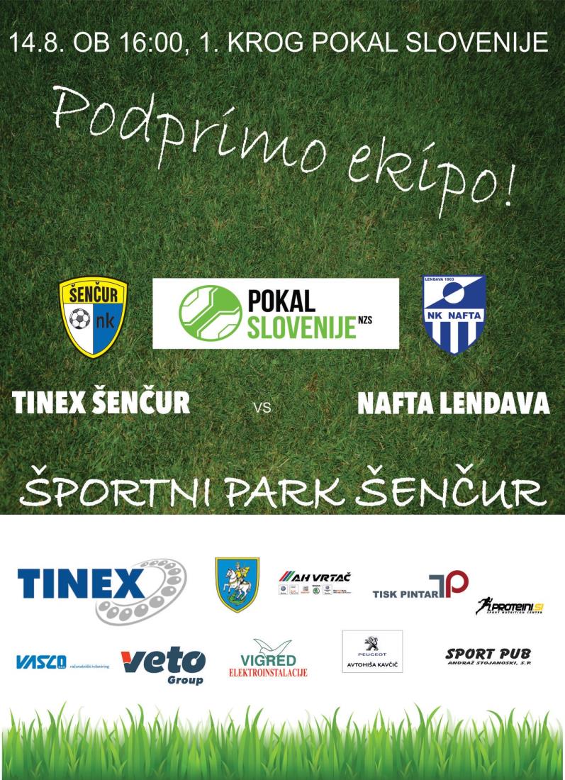 Nogometni klub Šenčur vse ljubitelje nogometa vabi na ogled prve domače tekme v novi sezoni. Letošnjo sezono članska ekipa NK Tinex Šenčur odpira s pokalno tekmo. V prvem krogu Pokala Slovenije se bodo pomerili z ekipo NK Nafta Lendava.