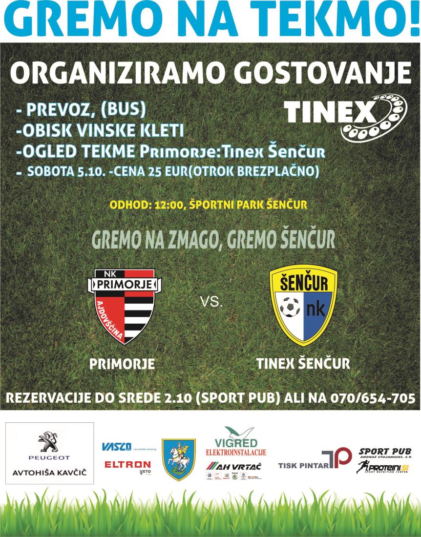 Nogometna tekma Tinex Šenčur-Primorje Ajdovščina