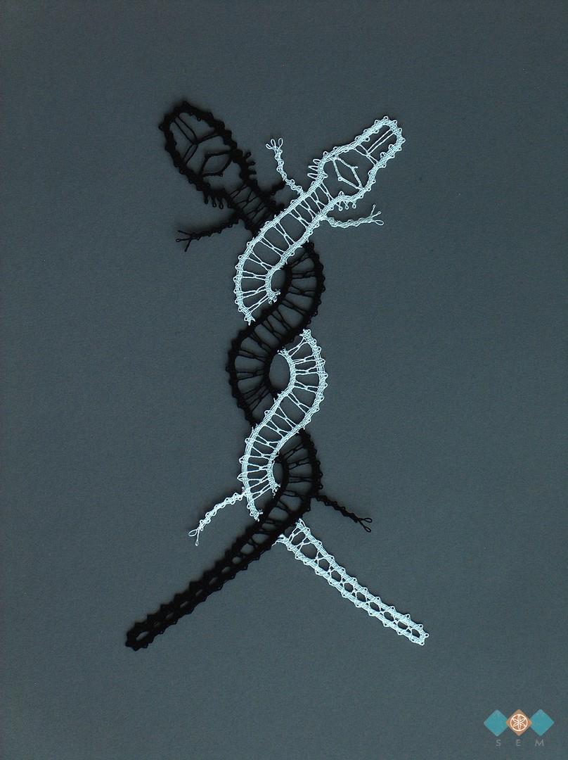 Naslovna čipka človeški ribici je avtorsko delo Maje Bizjak in je izdelana po logotipu Jamarskega društva Carnium Kranj in je del zbirke čipk Slovenskega Etnografskega muzeja.