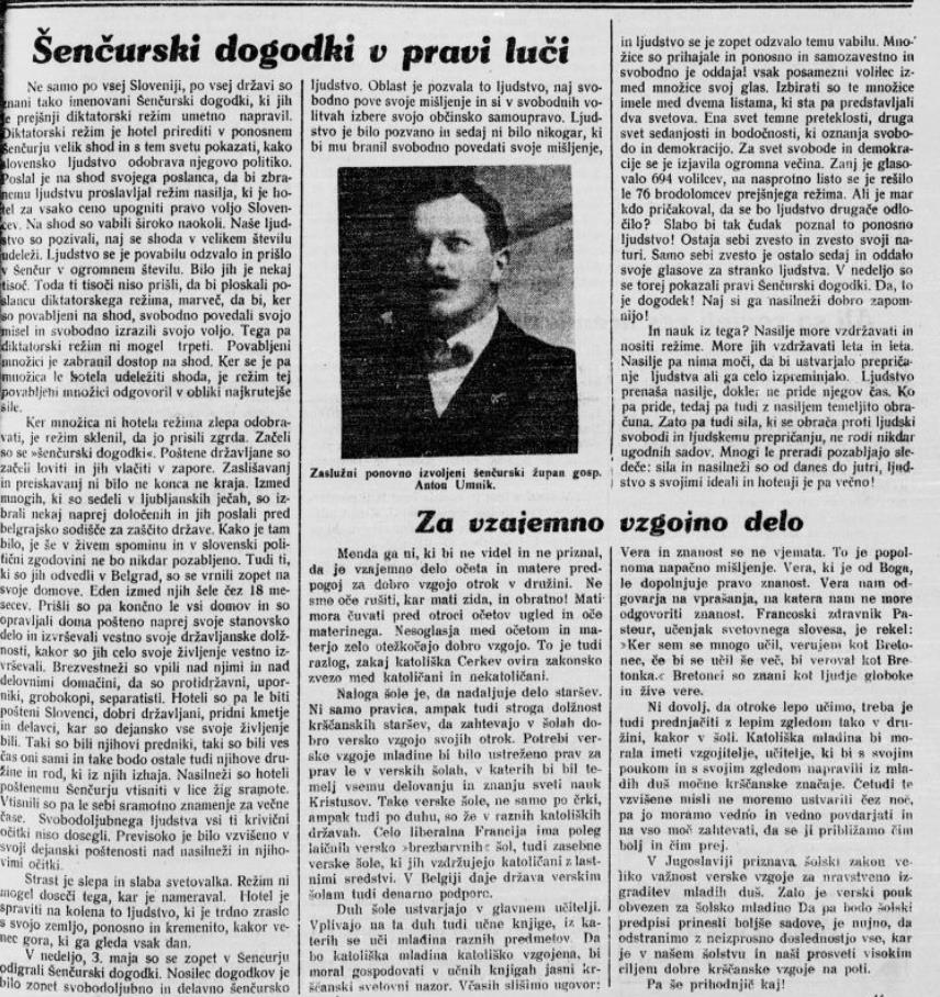 Šenčurski dogodki 1932, 1941-1945, 1945-1950, 1975, 2016 imajo skupni imenovalec: bili so odziv slovenskega okolja na izzive, ki so prihajali z veliko zgodovino z jugoslovanskega in/ali svetovnega odra. Leta 1932 je šlo za odpor proti kraljevi diktaturi in centralizmu, med drugo svetovno vojno za usodni državljanski, bratomorni spopad, po drugi svetovni vojni za revolucionarni oblastni teror in upor proti njemu, leta 1975 je oblast pokazala vso nemoč ideološke dogme bratstva in enotnosti, leta 2016 pa so se protestniki v Šenčurju odzvali na svetovno migrantsko krizo in se uprli slovenski oblasti.