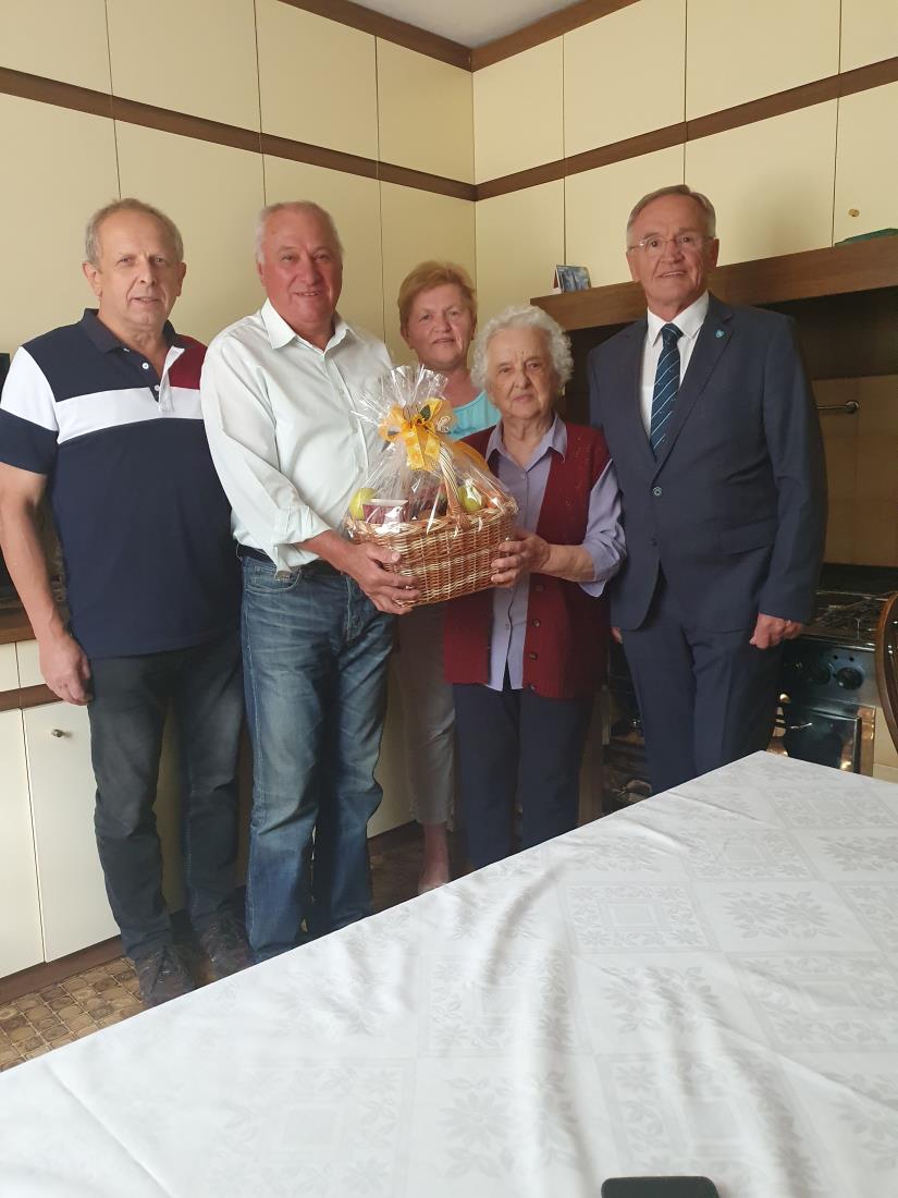 Tudi njo so ob tej priliki obiskali in ji voščili ter izročili simbolno darilo župan Ciril Kozjek, predsednik KS Šenčur-Sr. vas Miro Peternel in predstavnica RK Šenčur.Gospa Katarina iskrene česitke!!!