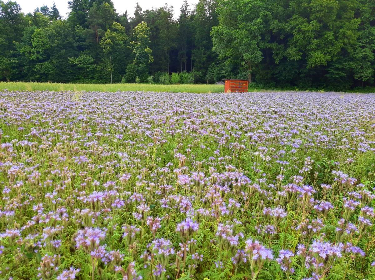 Po njej se spustimo na gozdno obrobje, kjer nam pogled proti jugu odkrije visokodebelni sadovnjak, ki je v kulturnem prostoru redko ohranjen in zato tudi toliko bolj dragocen. Ob gozdni rob bo v pomoč ohranitvi sadovnjaka postavljen tudi premični čebelji panj. Tu se počasi zaključi daljša varianta poti. Proti izhodišču se bomo vrnili po makadamski poti, ki smo jo deloma prehodili že ob hoji proti hribu. Ob sprehodu po zadnjem delu poti se ozrimo na zahod proti Alpam in na kulturno krajino s severnim delom Srednje vasi z znamenitima cerkvama sv. Katarine in sv. Radegunde.