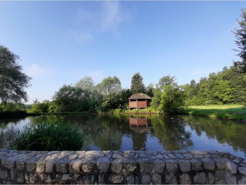 Obiskovalec si lahko najprej ogleda zanimivo oblikovan vodni zadrževalnik. Njegova osnovna funkcija je sicer zadržanje visokih voda, a je oblikovan večnamensko in ima tako tudi druge privlačne značilnosti.