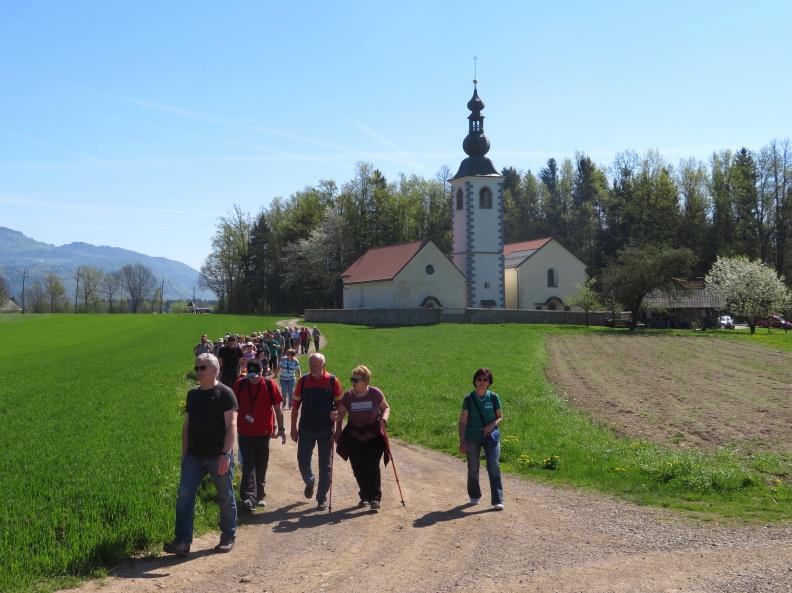 Preko glavne ceste gremo v smeri podružničnih cerkva sv. Katarine in sv. Radegunde. Tu se bomo lahko podrobneje seznanili s kulturno tematiko. Cerkvi sta posebni že na prvi pogled. Ograjeni sta z zidom in postavljeni vzporedno ena poleg druge, med njima pa stoji zvonik. Okrog cerkva in bližnje okolice se plete precej zgodb in legend. Cerkvena ladja je v notranjosti pokrita z lesenim kasetiranim in poslikanim stropom, na katerem je na osrednji kaseti poslikana zavetnica cerkve. Južno cerkev, ki je posvečena sv. Radegundi, so najverjetneje postavile redovnice dominikanke iz Velesovega. V njej so ohranjene gotske freske z upodobitvijo Pasijona, Pohoda in Poklona sv. Treh kraljev.