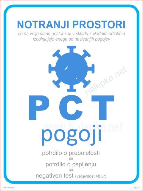 Na podlagi določil Odloka o načinu izpolnjevanja pogoja prebolevnosti, cepljenja in testiranja za zajezitev širjenja okužb z virusom SARS-CoV-2 (Ur. list RS, št. 142/2021), ki ga je sprejela Vlada Republike Slovenije, vas obveščamo in seznanjamo, da ste za vstop v prostore Občine Šenčur dolžni izpolnjevati pogoj PCT.