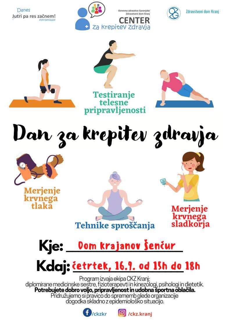 Center za krepitev zdravja, Zdravstvenega doma Kranj je pripravil dogodek "Dan za krepitev zdravja", ki ga bodo izvedli tudi v Šenčurju.