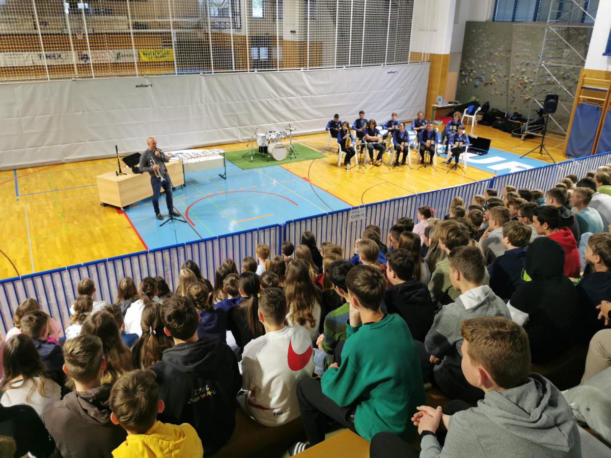 V ponedeljke, 8.5. 2023 smo v telovadnici osnovne šole Šenčur gostili Pihalni orkester občine Šenčur, ki je navdušil tako učence kot tudi učitelje. Pedagog Matej Rihter je predstavil različne vrste pihalnih inštrumentov, med drugim flavto, klarinet, saksofon, trobento, pozavno in tubo. Vsak inštrument je predstavil s krajšim solo nastopom, s čimer je prikazal raznolikost inštrumentov ter njihovih zvokov.