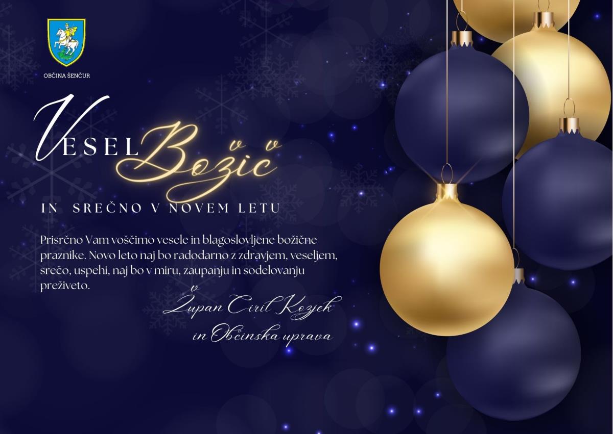 Prisrčno Vam voščimo vesele in blagoslovljene božične praznike. Novo leto naj bo radodarno z zdravjem, veseljem, srečo, uspehi, naj bo v miru, zaupanju in sodelovanju preživeto.