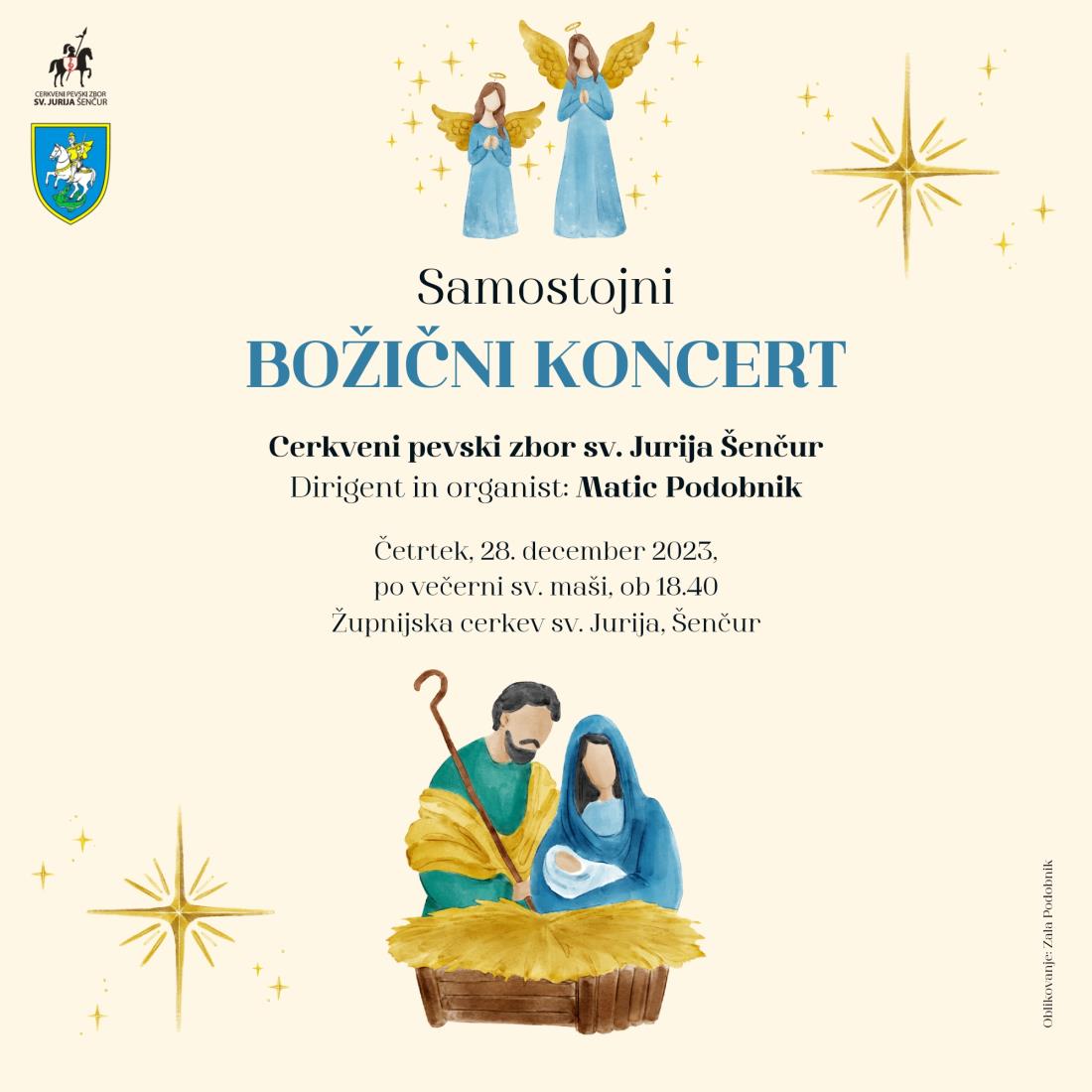 Cerkveni pevski zbor sv. Jurij iz Šenčurja z dirigentom Maticem Podobnikom vabi na samostojni "Božični koncert", ki bo v četrtek, 28. decembra, ob 18:40h po sveti maši v župnijski cerkvi svetega Jurija v Šenčurju.