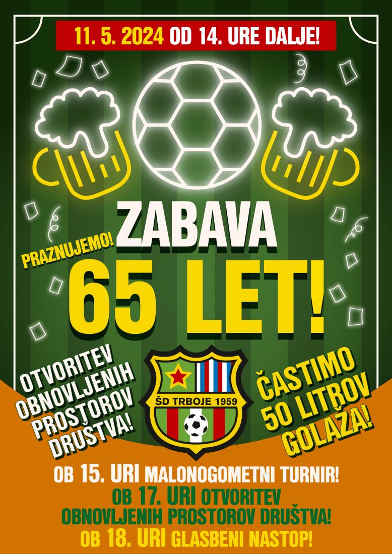 Vljudno vabljeni na praznovanje 65-letnice ŠD Trboje, ki bo v soboto, 11.5.2024 od 14. ure dalje!