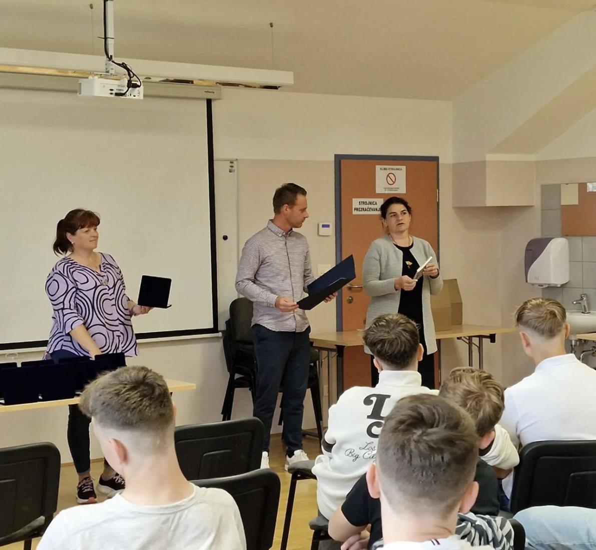 V nagovoru zbranim je podžupan vsem skupaj - učiteljem, ravnateljici Stanki Naglič, še posebej pa bodočim dijakom in dijakinjam izrekel iskrene čestitke ob uspehu v zadnjih devetih letih.